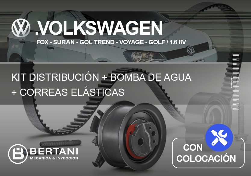 Kit distribución + bomba de agua + correas elásticas. Aplicaciones: Fox – Suran – Gol Trend – Voyage – Golf / 1.6 8v